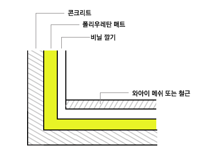 - 건축도면에 준한 와이어메쉬(#8 150x150 or 철근 설치)