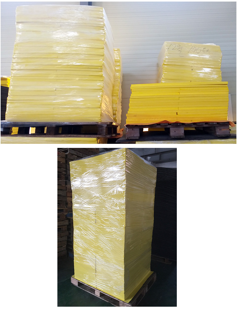 - 폴리우레탄 매트 상부에 PF FILM을 깔고 이음매는 OPP테이프로 접착시킨다.